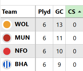 It’s all gone Pete Tong at the other end, too. United are one of four sides yet to keep a clean sheet (CS, below) this season, while only Burnley have conceded more big chances.