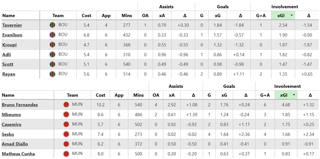 Over their last six Gameweeks, these are both sides’ best players for expected goal involvement (xGI):