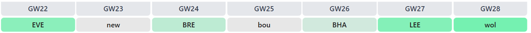 I don’t need to say much about his near-namesake Fernandes. He was a top pick when playing deeper, and we expect such output to increase once he’s fielded behind the striker. However, Bruno faces the league’s top two sides up next, making Gameweek 24 a better entry point. Maybe reaching him from Cunha this week, if possible in one move, is worth doing.