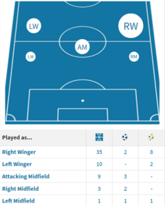 Above: Talbi’s 2024/25 positions, according to Transfermarkt