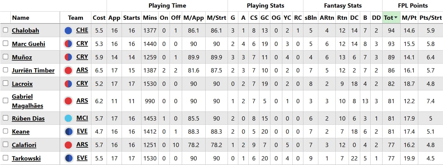 Despite frustrating returns for many managers, Virgil van Dijk (£5.9m) still looks like the standout defensive option. His appeal lies in reliability rather than explosiveness. He continues to amass defensive contributions and ranks among the top four defenders in the league for volume in that area.