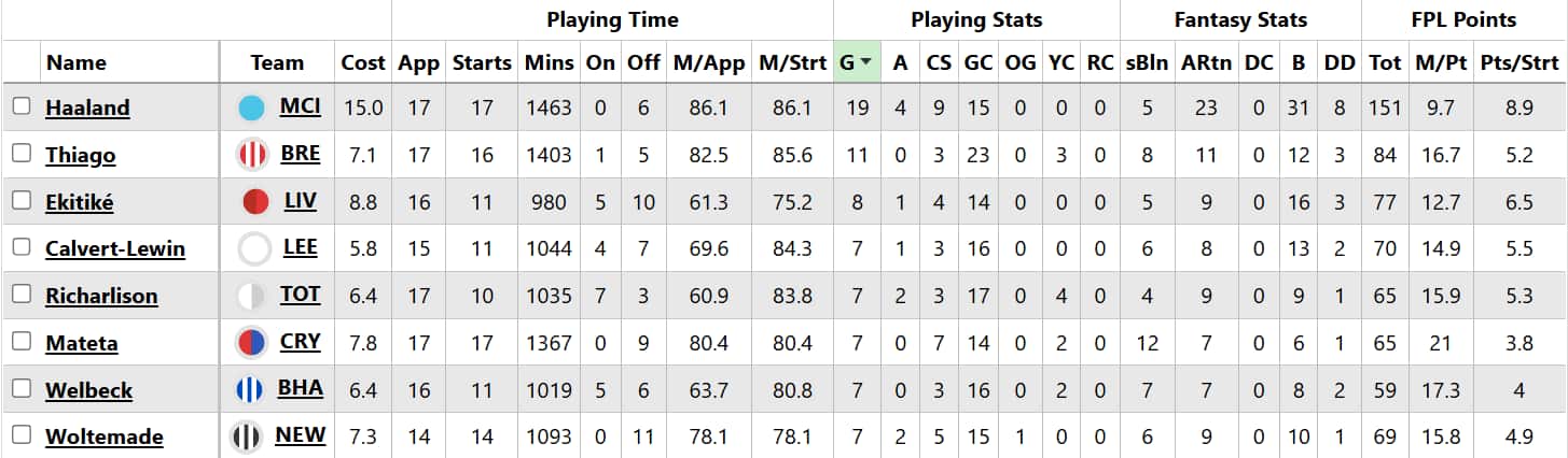 Manchester City also demand attention. Pep Guardiola’s side have won seven straight matches in all competitions and now travel to a hit-and-miss Nottingham Forest side. That run all but locks in Erling Haaland (£15.1m). The Norwegian already boasts 19 goals and four assists this season.