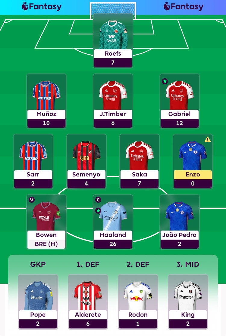 The basic ingredients for the Gameweek 8 Wildcard cake were triple Arsenal, Haaland, Enzo, Antoine Semenyo (£8.0m) and perhaps surprisingly, the out-of-form Joao Pedro (£7.6m), although his fixtures do look good.