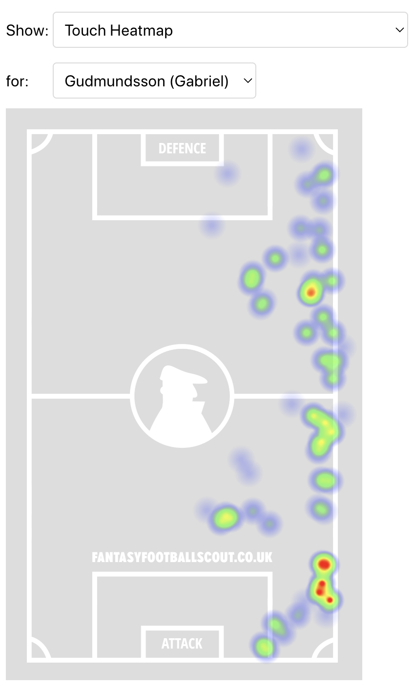 Above: Gabriel Gudmundsson’s touch heatmap in Gameweek 25
