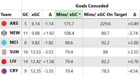 After 11 Gameweeks, Sunderland are joint-fourth for fewest goals conceded (10), joint-fourth for clean sheets (four) and joint-fourth for lowest xGC (below).