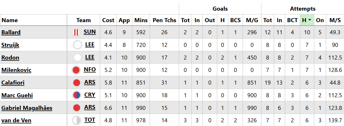 In the five fixtures that Ballard has started and finished this season, he’s averaged 8.6 points per match. Not even Gabriel Magalhaes (£6.6m) can better that.