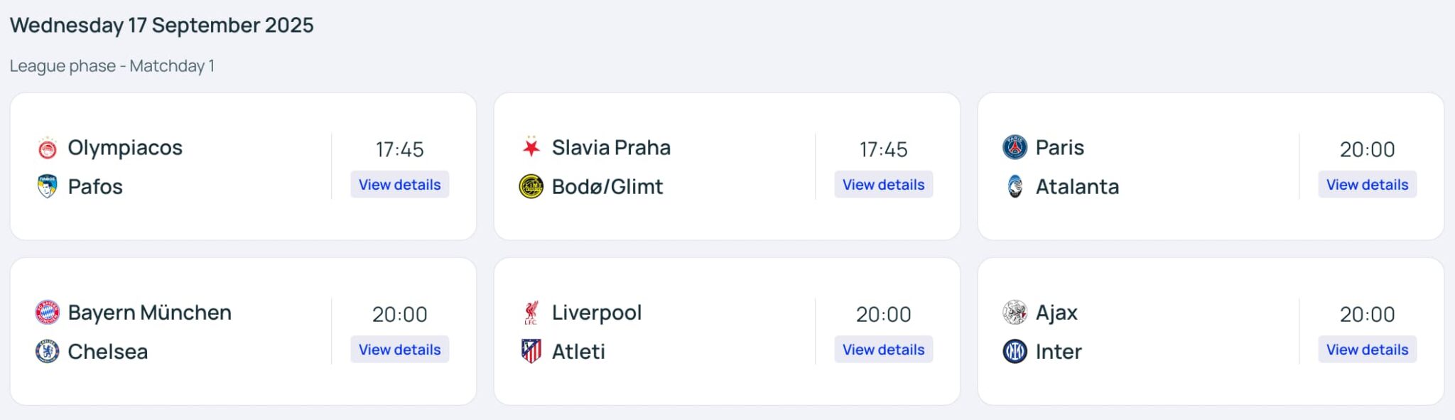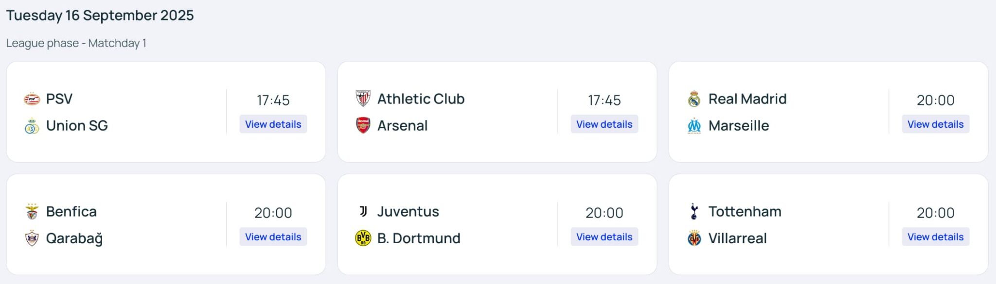Guirassy – Bodo/Glimt (h) Hakimi/Dembele – Athletic Club (a) Saka/Gyokeres – Club Brugge (a) Yildiz – Pafos (h) |