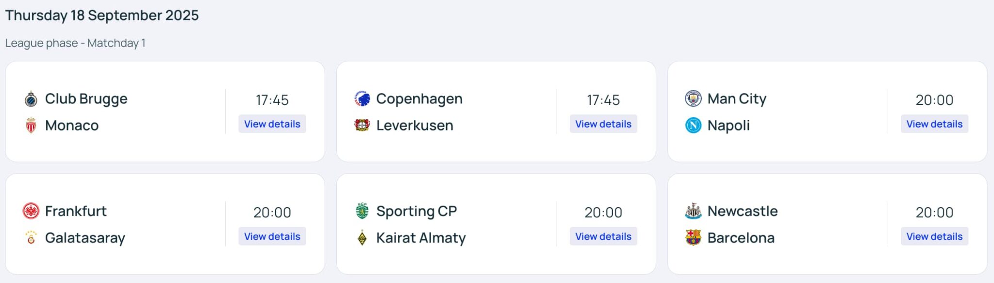 | 8 | Haaland – Galatasaray (h) Raphinha – Copenhagen (h) Saka/Gyokeres – Kairat (h) Salah – Qarabag (h) |